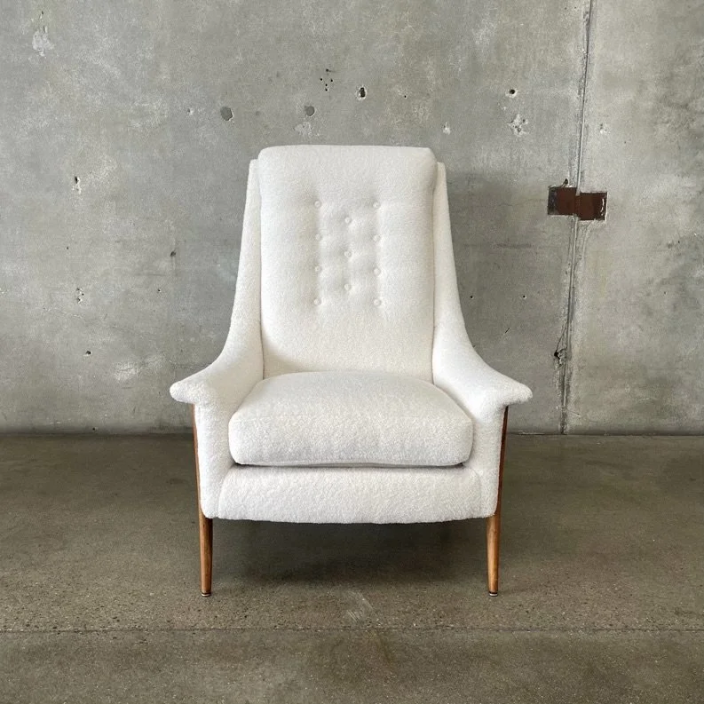 A pair of amazing mid century throne chairs. These need new upholstery and fabric but will be beautiful when they’re finished.